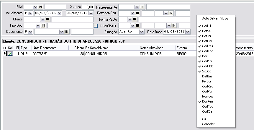 4. Clique em OK para o sistema registrar os campos selecionados
